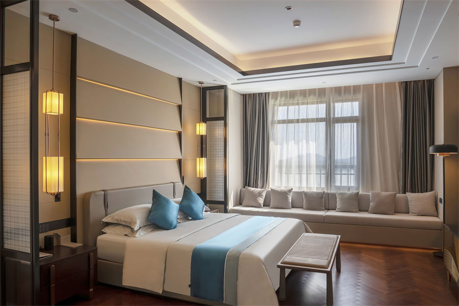 位于雪野湖东南湖畔,面朝雪野湖,背靠马鞍山,是集会议、餐饮、住宿、康养、娱乐、亲子等功能于一体的综合型度假酒店。酒店有客房204间(套),以及多功能宴会厅、视频会议厅、全日制自助餐厅、宴会包厢、健身房、游泳池、儿童乐园、婚礼草坪,可提供24小时管家式服务。