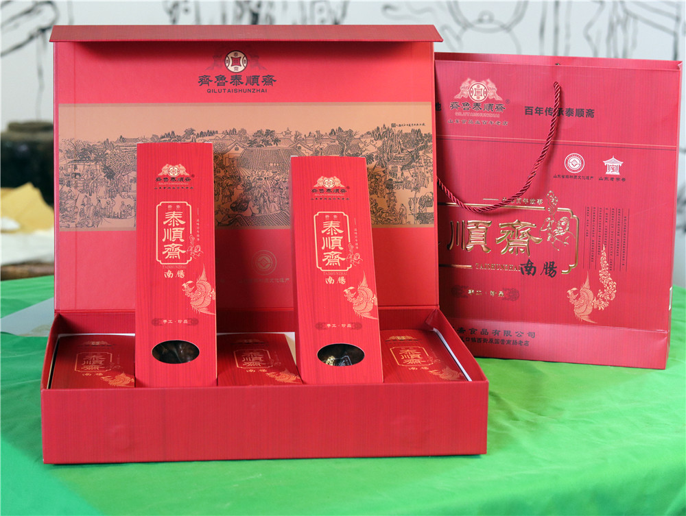 省级非遗项目。起源于清道光年间,距今有170多年历史,由济南历城人苏志廷在莱芜口镇创制。因其制作工艺和所用香料来自南方,故称“南肠”,是莱芜的传统名吃。南肠的原料选用莱芜黑猪的瘦肉和小肠,配以砂仁、白芷、肉蔻、草蔻、八角、桂皮、花椒、莳萝籽等十余种香料及优质酱油,经刮肠、剁肉、拌馅、灌肠、晾晒、蒸煮等六大工序精制而成。南肠黑褐油亮,味道香醇,营养丰富,肉质紧实,具有耐贮耐运、虫不蛀、蝇不叮、久放不变质等特点,还有增进食欲、健胃理气的功效,是莱芜人馈赠亲友、宴会佐餐的首选。