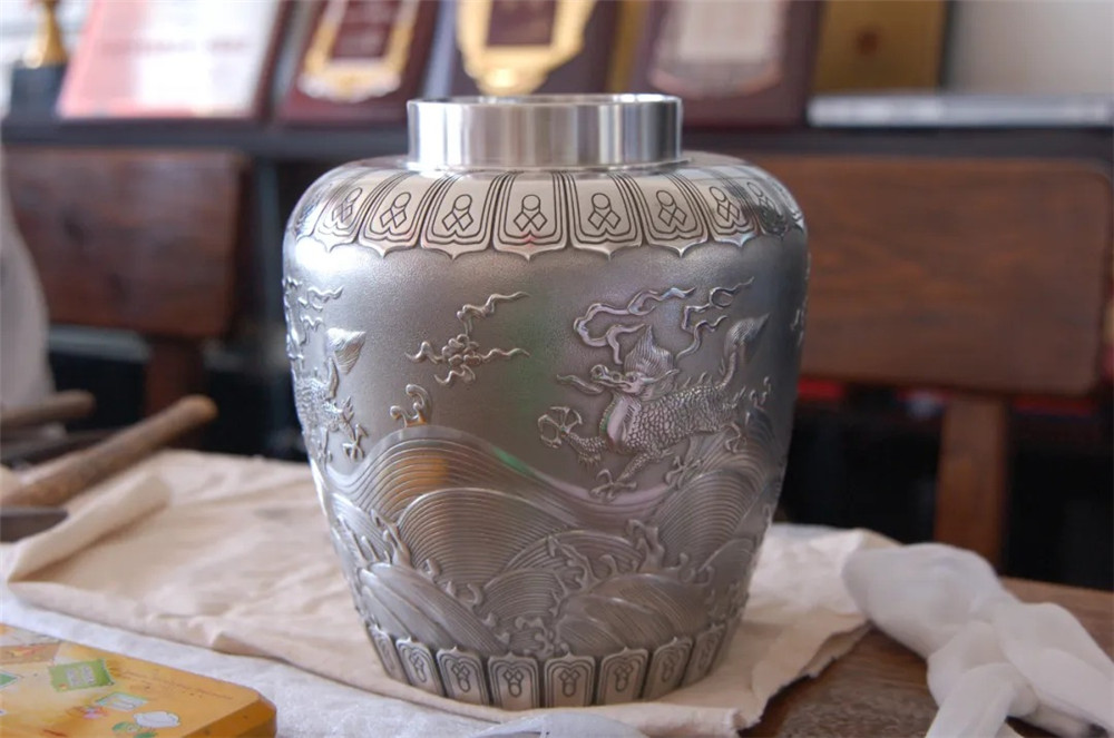 国家级非遗项目。作为莱芜一项传统手工艺,最初用于制作日常用品,传承历史可追溯至明清时期,莱芜制锡世家王家当时已负盛名,作品多为文人墨客和达官贵人所收藏。有